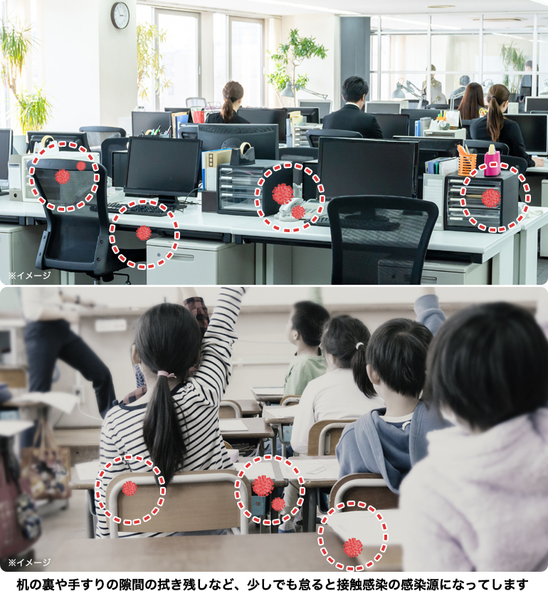 実は皆さんが普段何気なく使っていたり訪れている場所・施設で広く使われており、接触によってウイルスが蔓延することを防いでいます。